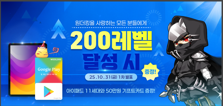 대상: 2025년 10월 31일 이후 가입자 중 이벤트 기간 내 200레벨을 달성한 유저
