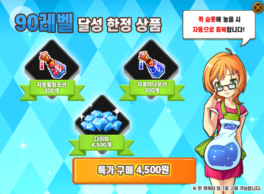 1. Lv.10 ~ Lv.120레벨에 도달할 경우 레벨 달성 패키지가 출력됩니다.