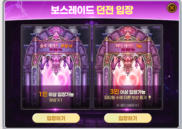 -파티 보스레이드는 최소 3인이상 입장이 가능합니다.