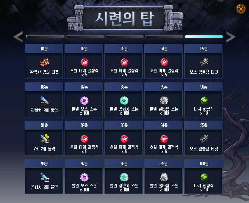 - 시련의 탑이 71 ~ 100층이 추가되었습니다.