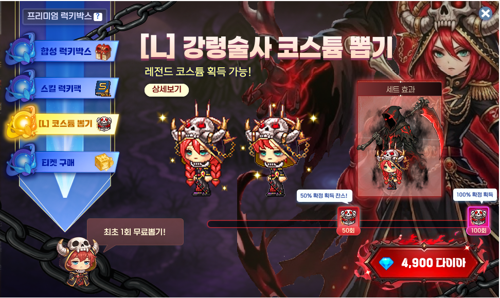 [프리미엄 럭키박스]에 [L] 코스튬 뽑기가 추가되었습니다.